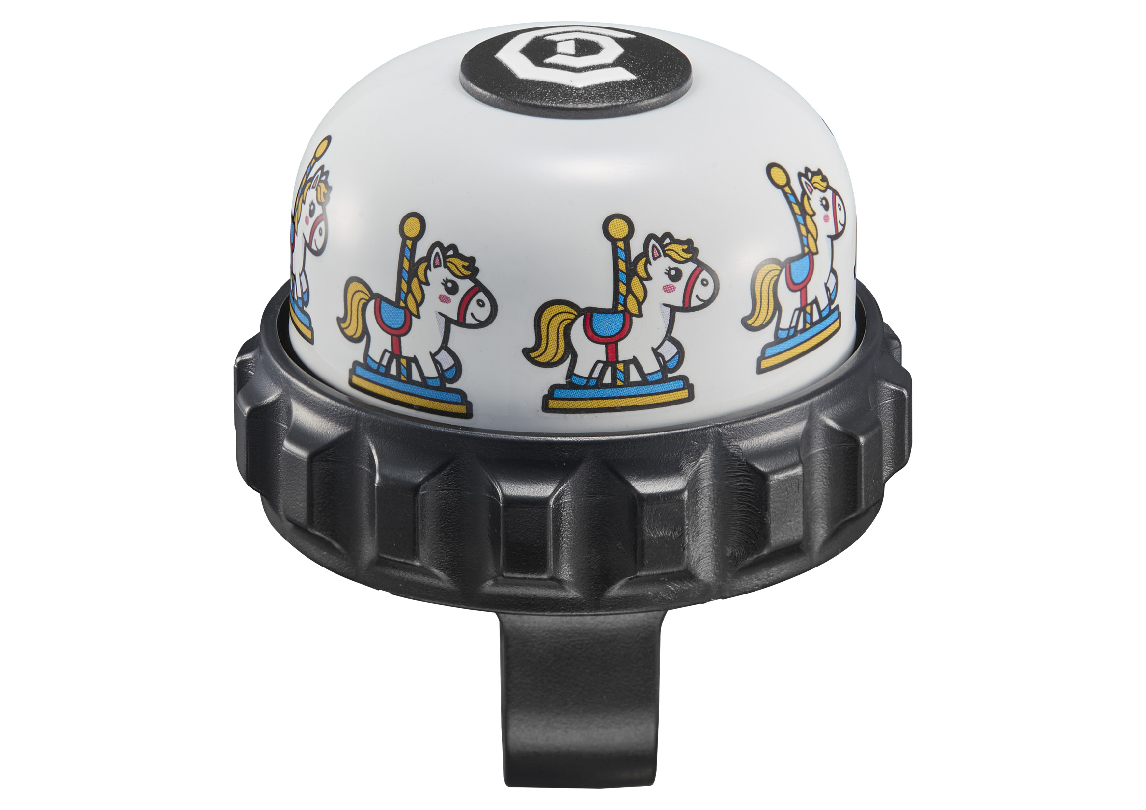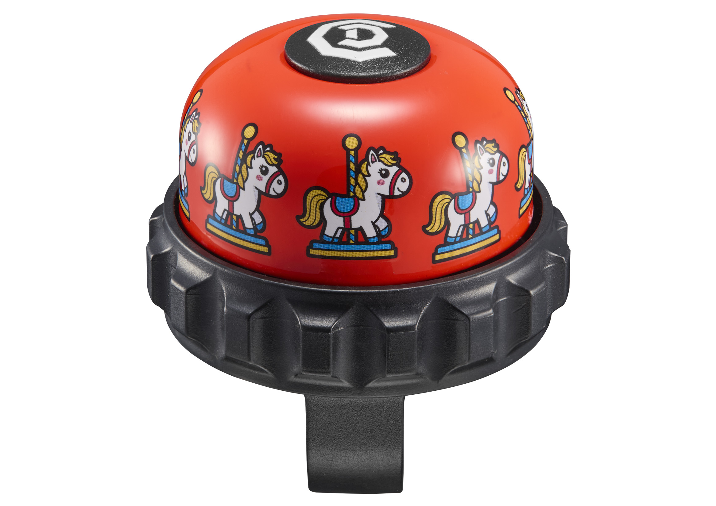 Rotating bell is simple mounted onto handlebar for bright and resonant ring.